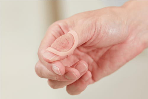 入浴や水仕事など水を使うときは、濡れても問題ないシリコン製のサポーターを使うとよいでしょう。使い捨てできるテーピングで代用するのも一案です。