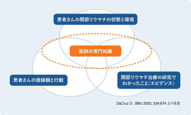 関節リウマチの治療を選ぶ時にも、SDMの考え方は大切です。なぜなら、現在の関節リウマチ治療では、治療の開始や中止の時期、手術、リハビリテーションを受けるかどうか、また薬物治療を受けるなら抗リウマチ薬や生物学的製剤も含めて何を選ぶかなど、選べる治療が多いぶん、どんな治療を受けるのかを選ばないといけない場面も多いからです。